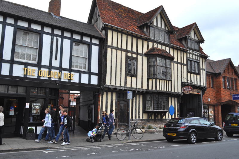 The Golden Bee is the archetypal Tudor-style Olde England tavern in Stratford-upon-Avon, Shakespeare’s stomping ground. Next door is the living history museum, The Falstaff Experience. Like all English school kids I had Shakespeare practically rammed down my throat at secondary school and like all my fellows came to loathe him and all his works. It took me decades to overcome this nausea and swing in the opposite direction entirely. If they’d made me listen to Beethoven and Mozart at school I’m sure I’d have hated them as well, but fortunately our music teacher was a vacuous idiot of the sort who’d never survive in the profession today and who in fact would probably have been arrested over some of the innuendos he made to the girls in our class.