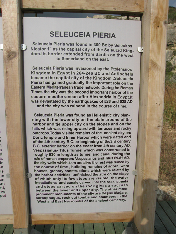The ancient city of Seleucia Pieria, 16 miles to the southwest of Antioch, was the first new city built by Seleucis I Nicator in 300BC. He made it his capital and even got to enjoy it for a few years before his assassination in 281BC, after which Antiochus I moved the capital to Antioch, named after himself.