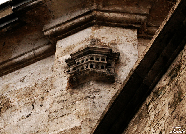 ‘Kusevi’ (koosh-evvy) are Turkish bird-houses that are very often built into the walls of buildings, especially mosques. I spotted one particularly ornate one in Istanbul years back and since then have always been keeping a lookout and they seem to be all over the place.