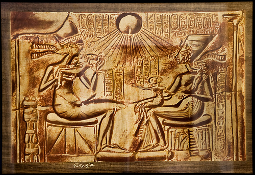 The two of them are often shown in reliefs playing with their children and holding them up to the sun disc in a display of affection completely absent from earlier and later royal portraiture.