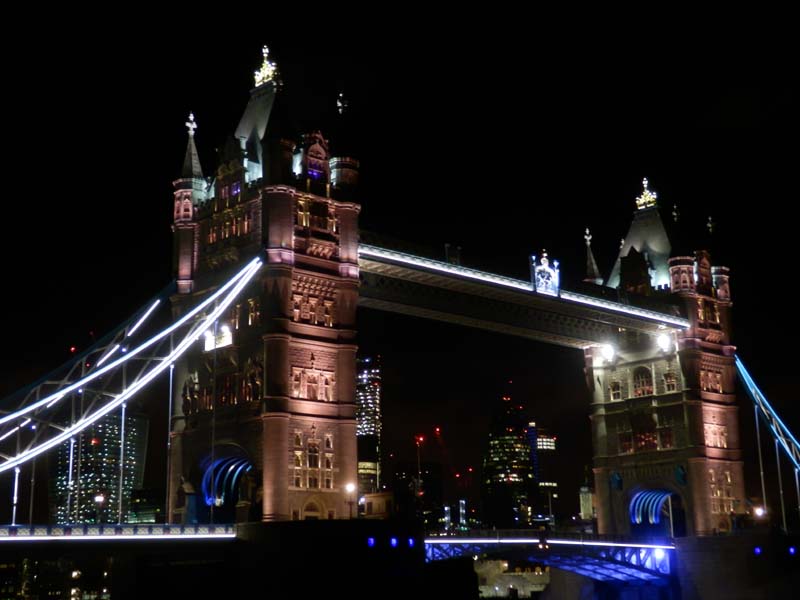 Anyway, anyway… I took a few photos of Tower Bridge by night, which made up for dinner with an insensitive bigot.