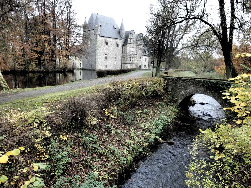 Enjoying home-made cakes with coffee served on the terrace is a great way of spending a lazy afternoon in summer, although at this time of year the whole place is shut up and left to the spooks. The autumn leaves and brooding skies however lend their own charm to the Wasserschloss, which would serve as a good stand-in for the Udolpho or Otranto fortresses in the old Gothic novels.