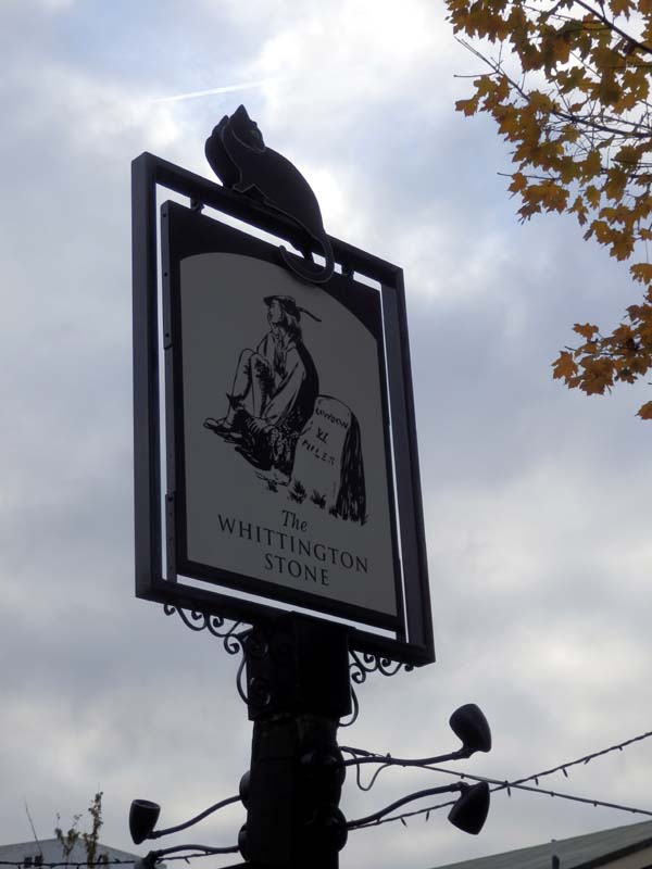 OLYMPUS DIGITAL CAMERA It turns out that this was the very spot on which Dick Whittington was standing when he heard the Bow bells of London urging him to ‘turn again, Dick Whittington, thrice Lord Mayor of London’ and fulfil his destiny. He was famous for having a black cat and all his possessions tied up in a handkerchief attached to a stick. Not the cat, of course.