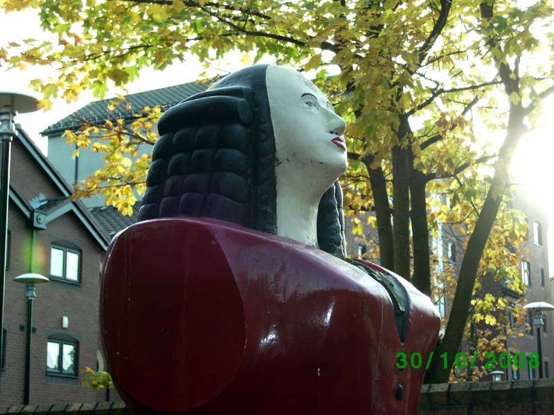 A Dolly No. 6 was set up outside the old Custom House Quay in 1992, on the same spot as Dollies 1-4. This is a fine, buxom wench dressed in red, an echo of the original figurehead, carved in solid oak by Jane and Martyn Grubb.