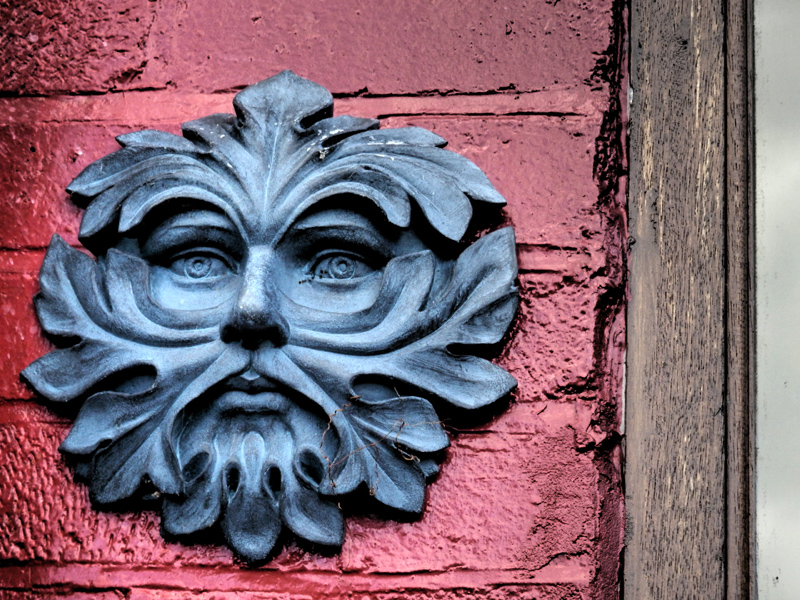 A synergy of John Barleycorn, Jack in the Green and other sprites of rural English folklore, The Green Man’s roots actually go back several millennia, and once you’re on the lookout you can find his image all over the place.