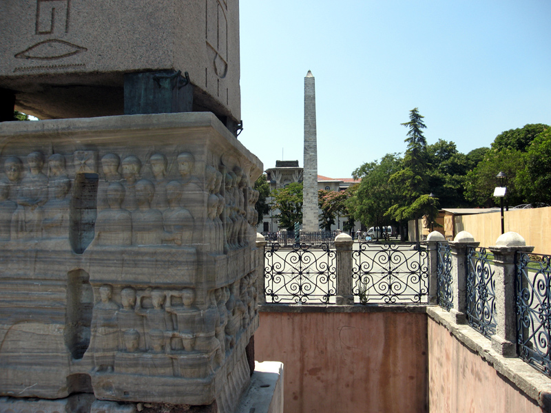 It was the Byzantines who set the obelisk on its massive marble plinth and added two further inscriptions in Greek and Latin. They also added reliefs of the obelisk being erected, and of chariot races in the hippodrome.