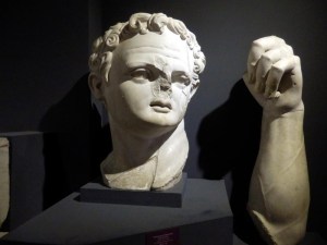 The Imperial Cult Room is dominated by a colossal head and arm of the emperor Domitian, as well as seated colossal statues of the first emperor Augustus and his scheming wife Livia. All such grossly enlarged statuary was designed at the time to make the imperial family appear larger than life in every respect, and it’s certainly still very impressive today. Our own paltry little leaders seem pretty pathetic by comparison.