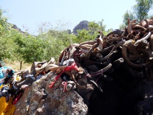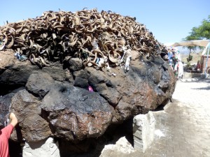 Sticking the horns of slaughtered goats onto this enormous rock appeared to be a local custom, and I never did find out how the rock got there in the first place. Maybe it rolled down from the mountain like a divine gift sometime in the past and the Cemevi precinct was built around it.