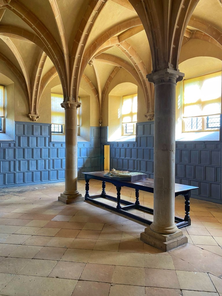The castle you see today was largely created in the early 17th century by the Cavendish family as a place for entertainment and display rather than military defence. The result is a delightful mix of Renaissance-inspired comfort and showmanship: ornate state rooms, intricately modelled plasterwork, and a succession of chambers designed to impress visitors. Set alongside these fine living quarters are the atmospheric ruins of the older fortifications, which remind you of the site’s deeper medieval roots.